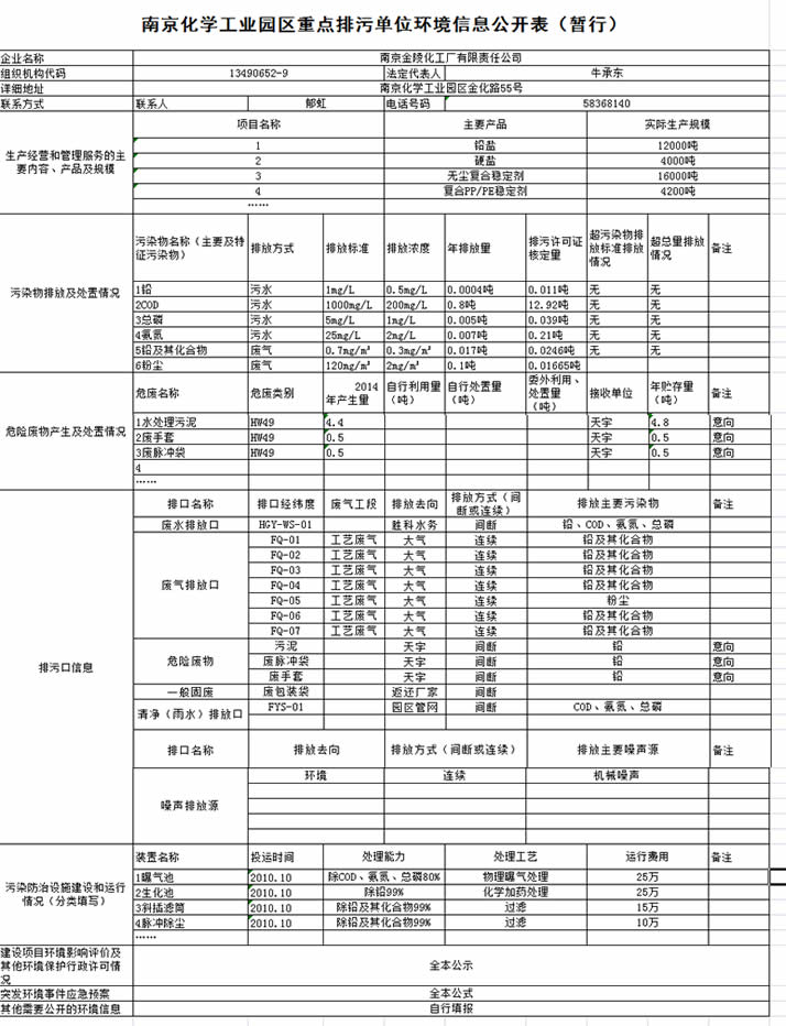 南京化學(xué)工業(yè)園區重點(diǎn)排污單位環(huán)境信息公開(kāi)表(暫行)